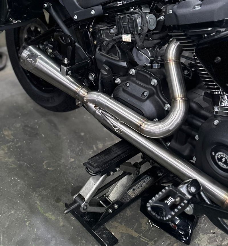 NEW DYNAMITE CREW VS CARBOX RACING 2X1 STAINLESS EXHAUST FOR NEW SOFTAILS Carbon